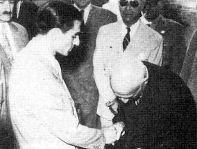Mosaddegh shaking hands with Mohammad-Reza Shah in their first meeting after Mossadegh's election as Prime Minister By Unknown - http://www.aryamehr.org/eng/19august/28mordad.htm, Public Domain, https://commons.wikimedia.org/w/index.php?curid=7431651 |