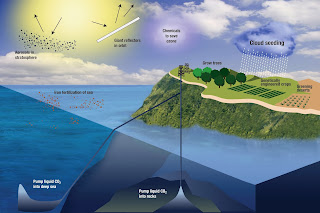 I'm posting not just due to a week from Hurricane Sandy's anniversary: the "quick fix" solution promoted (and I've reported on this blog) has been geoengineering, i.e. seeding the clouds with sulfate aerosols deliberately to cool the temperature of the planet. I had a strong reaction to this: One of my process engineering projects had been eliminating chlorofluorocarbons from [then] our Polysilicon Etch processes. The problem with the whole aerosol spray thing is there could possibly be less rain, and since the planet and our bodies are made of ~70% melted comet snow balls, that presents problems only Bedouins so far have successfully adapted to. Of course, the Bedouins kind of "know" where the water is for their survival. Quick fixes seem to be the norm in the post-Google world of downloading information versus studying to master it; we've lost an appreciation for the process of discovery and problem solving: both take time, and soon that luxury will not be afforded us.