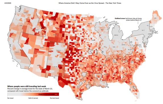 New York Times - Where Americans Didn't Stay at Home Even as the Virus Spread James Glanz, Benedict Carey, Josh Holder, Derek Watkins, Jennifer Valentino-DeVries, Rick Rojas and Lauren Leatherby |