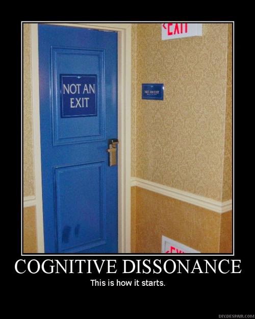 Cognitive dissonance inoculates one from taking in new information and forming new modes of thinking from it, the equivalent of placing index fingers in ears to sing-song "la-la" nauseatingly. It's been heartbreaking to see some of the comments on Facebook or Twitter from trolls that have a loud opinion and memorized talking points from bamboozle artists, but no actual experience in science or facts. [Thankfully, to the benefit of my blood pressure] I've learned to read and not engage: dissonance tends toward excited, incoherent, twisted-logic responses. Inevitably when I did engage previously, my goal would be sharing knowledge; their goal is authoritarian compliance to a quite twisted worldview. It's as if the criteria for winning a debate is how loudly one group or another can howl at the moon.