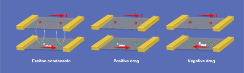 Superfluids (fluids with zero viscosity) and superconductors (materials with zero resistance) have a common ingredient: bosons. These particles obey Bose-Einstein statistics, allowing a collection of them at low temperatures to collapse into a single quantum-mechanical state, or Bose-Einstein condensate. Bosons in superconductors consist of two paired electrons, but the pairing is weak and only occurs at low temperatures. In a quest to build devices that carry electricity with low dissipation at higher temperatures, researchers have therefore explored the possibility of engineering electrical condensates [1] out of strongly bound pairs of electrons and holes, or excitons. Now, two research groups have, independently, fabricated and characterized a graphene-based device that is thought to be a promising platform for realizing an exciton condensate [2, 3]. Neither group has yet found evidence for such a condensate—the ultimate goal of such experiments. But their measurements lay the groundwork for future searches.