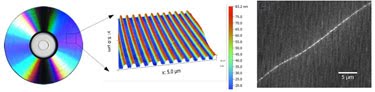 In the study, the scientists used a simple PDMS-based microcontact printing/replication process to reproduce the surface features of an HD-DVD-R disc (dissected into two parts to reveal the grating pattern on the inner side of the polycarbonate substrate) on conventional glass substrates. An important consequence of the fabrication process was the generation of defects in the form of nano-gaps that cut across the printed gratings.