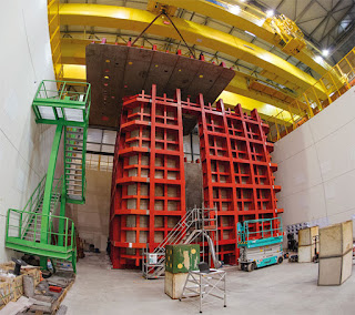 | From Nature: “The inner walls of the water tank are covered by a reflecting foil improving the light detection. This permits the identification of cosmic muons.” Image: K. Freund, GERDA collaboration |