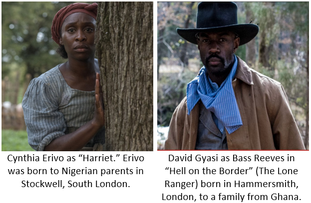 I am absolutely fine with Cynthia Erivo playing Harriet Tubman. I'm overjoyed David Gyasi is playing the real life inspiration for the whitewashed Lone Ranger. The African Diaspora in America are involuntarily from both of their home nations, knowing neither intimately. Both actors had to audition and be judged by the merits of their abilities. They worked as hard as the two Englishmen who portrayed a fictional billionaire superhero crime fighter and a starship captain in the 24th century. If neither of these individuals won their parts, we'd be talking about someone else.