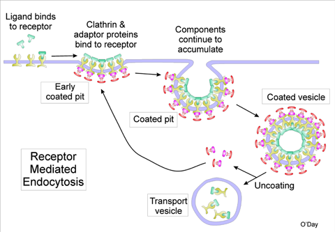 Illustration of receptor–mediated endocytosis.3 Image Credit: Illustration courtesy of Professor Emeritus Danton H. O’Day, Department of Biology, University of Toronto Mississauga, Canada |
