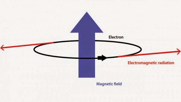 | An electron in a magnetic field will turn circles and emit radiation. Adrian Cho - Science Mag |