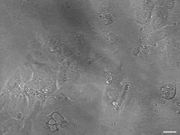 | Gif: Nanotools Bioscience This video shows heart cells being manipulated by an optical graphene stimulator. |